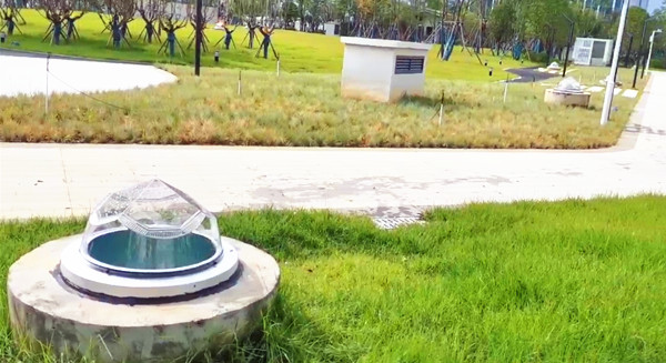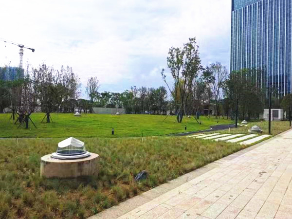 遠眺鉆石采光器就像一顆顆的磚石鑲在綠化帶里一樣,與綠化帶景色相互交映,組成了一道靚麗的風景線!